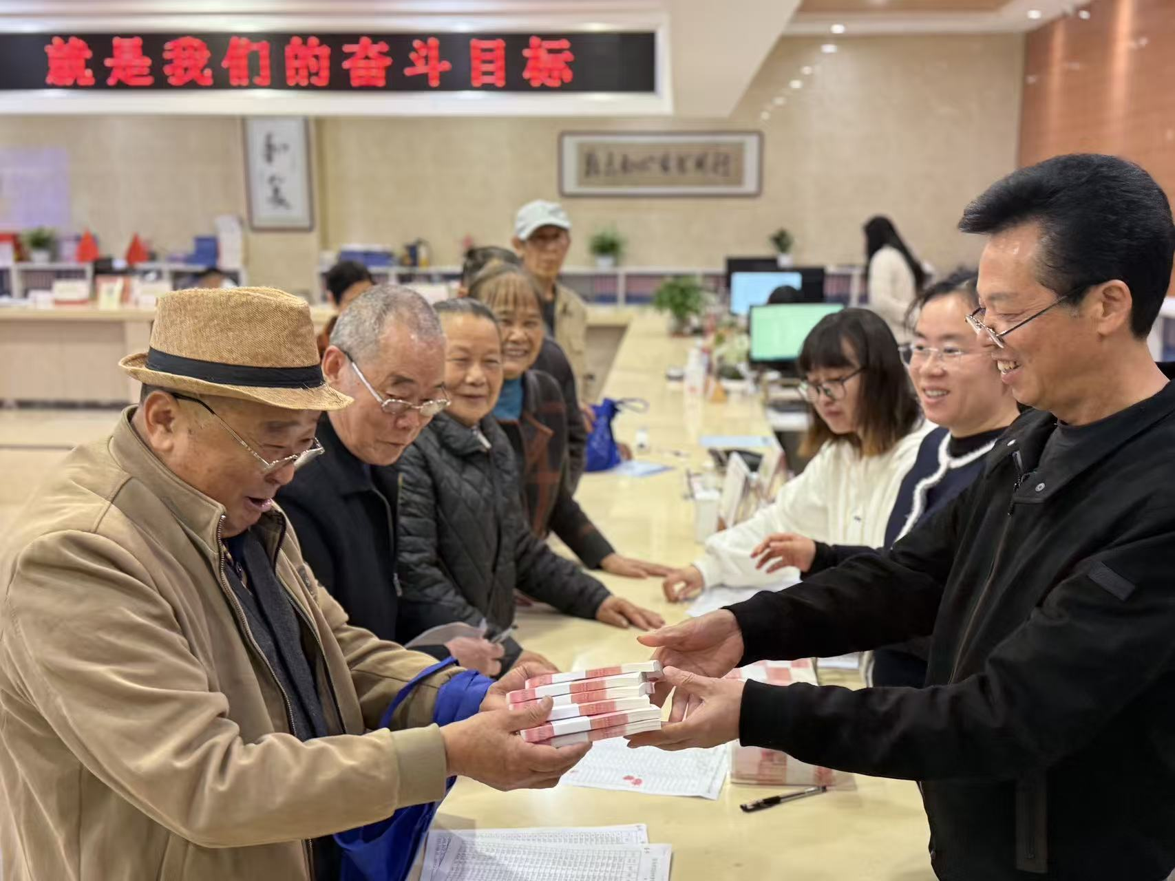 11月13日上午,道角村积极落实相关政策,向辖区内符合条件的福利份额人员集中发放两项补贴,将暖心关怀精准送达村民手中。
